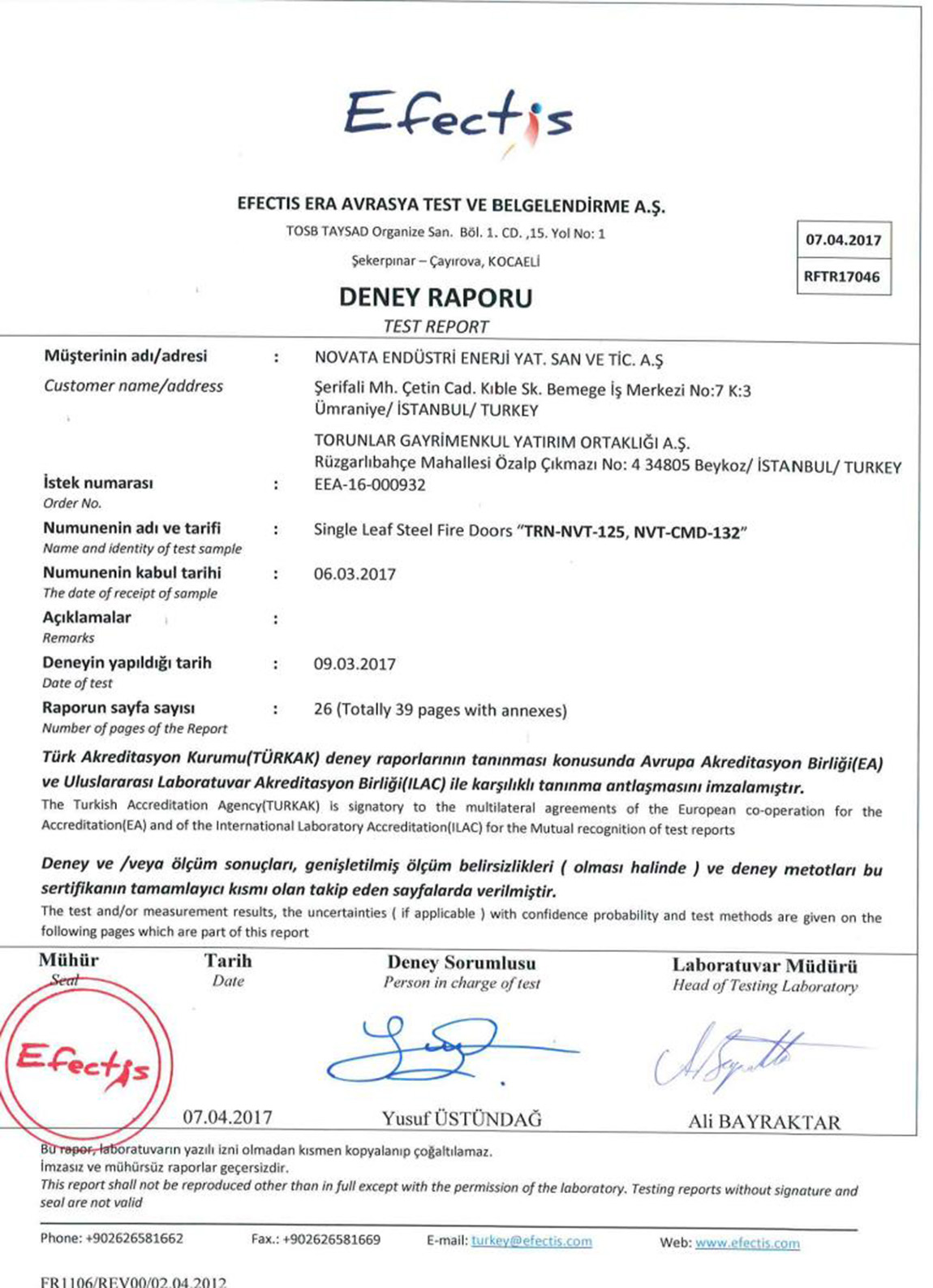 Menfezli Yangın Kapıları